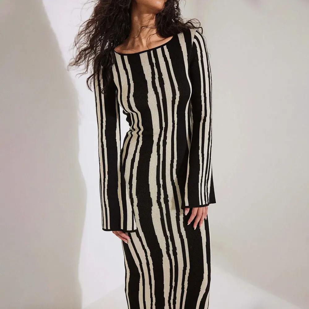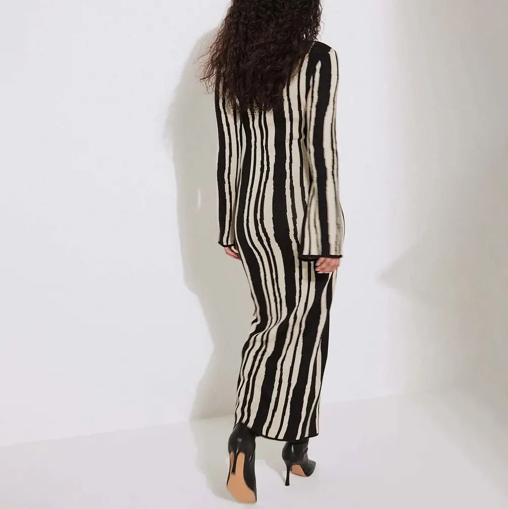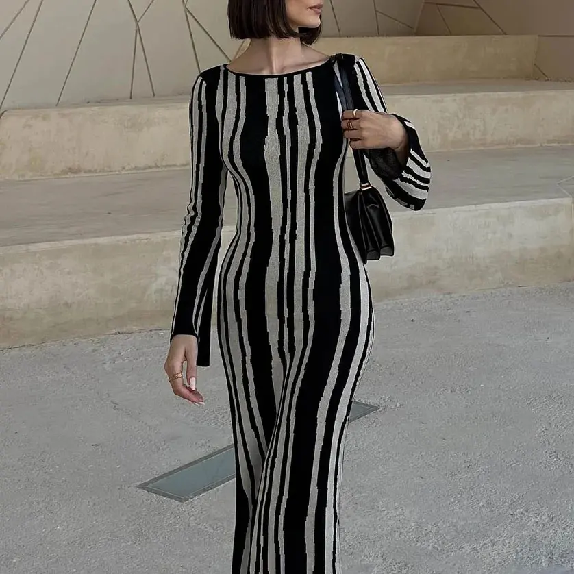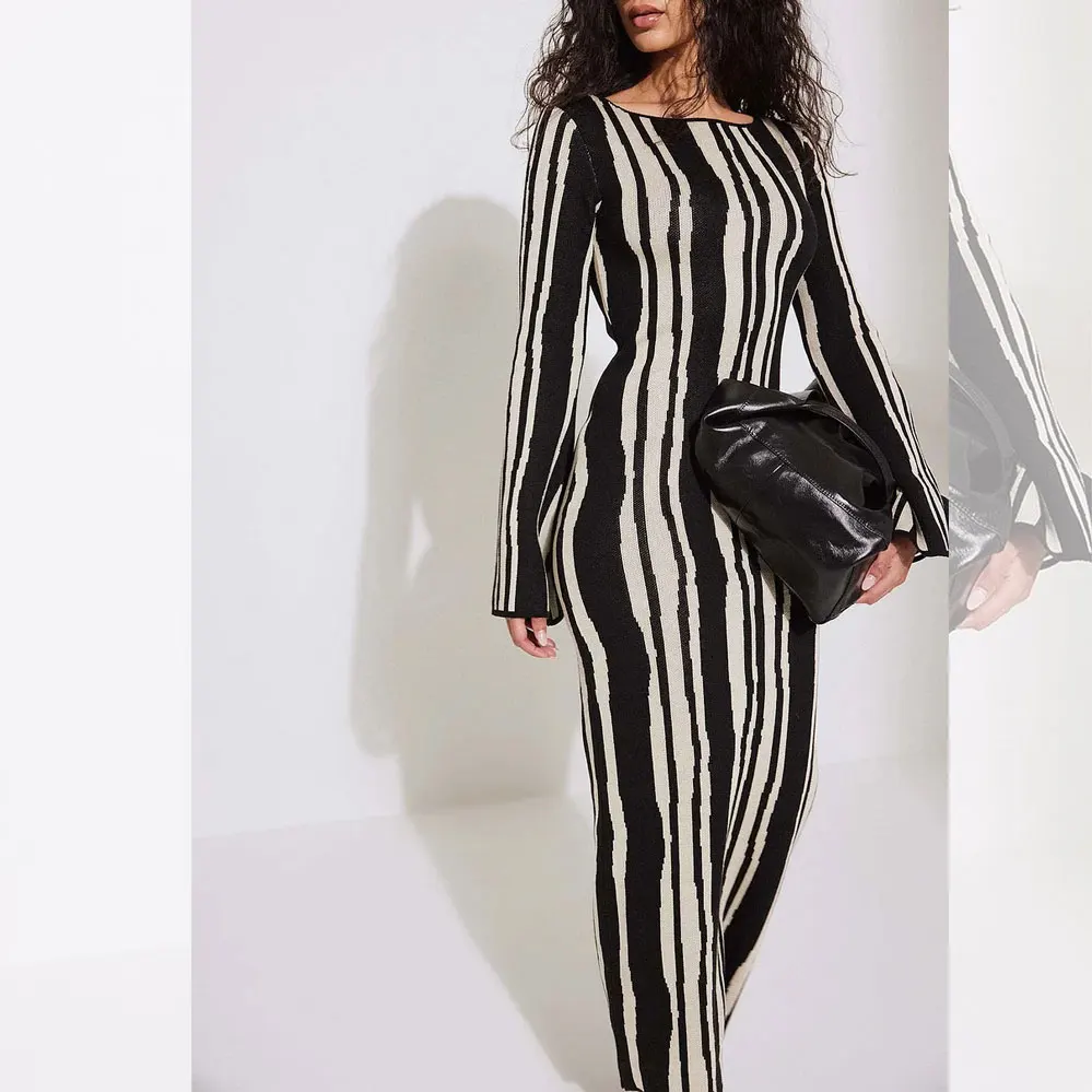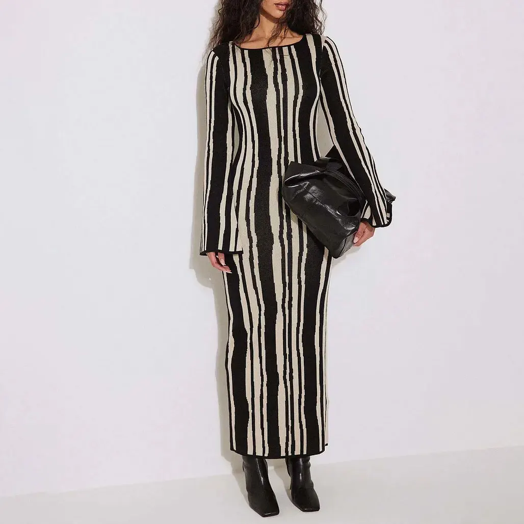 New Arrival Fall Winter Thick Heavyweight Sweater Dress Long Sleeve Maxi Dress Custom Modest Printed Knitted Crochet Dress